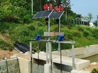 由太陽(yáng)能光伏板和小型風(fēng)力發(fā)電機(jī)為蓄能電池組充電,電池組有BMS電池管理軟件管控,為永磁無(wú)刷直流電機(jī)的各類驅(qū)動(dòng)裝置供電,同時(shí)為視頻監(jiān)控,壓力、流量、液位傳感器,照明等供電